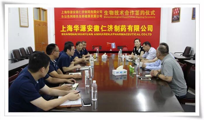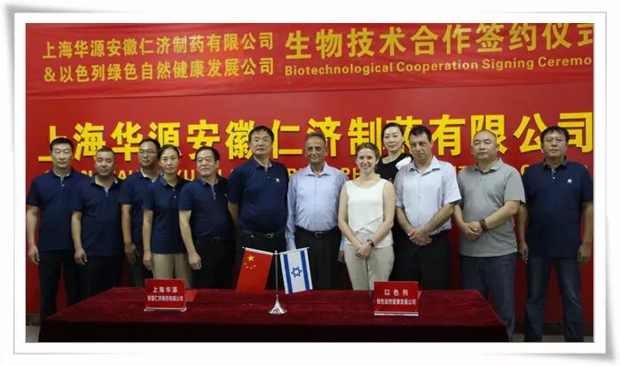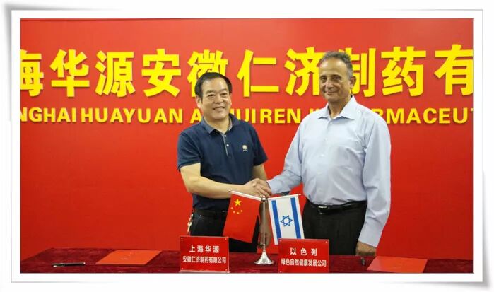 本着互利共赢、共同成长。2018年7月26日,以色列绿色自然健康发展公司与上海华源安徽仁济制药有限公司战略合作签约仪式在仁济制药会议室隆重举行。以色列国防预算委员会主任、驻日本大使: Eli Cohen(艾里)先生,总经理Gad Maor(盖帝)先生,北京意生信科技有限公司纪高峰博士,安徽华源党委副书记、总经理、仁济制药董事长康中原,上海华源安徽仁济制药有限公司总经理陈晓光等共同参与并见证了签约仪式。